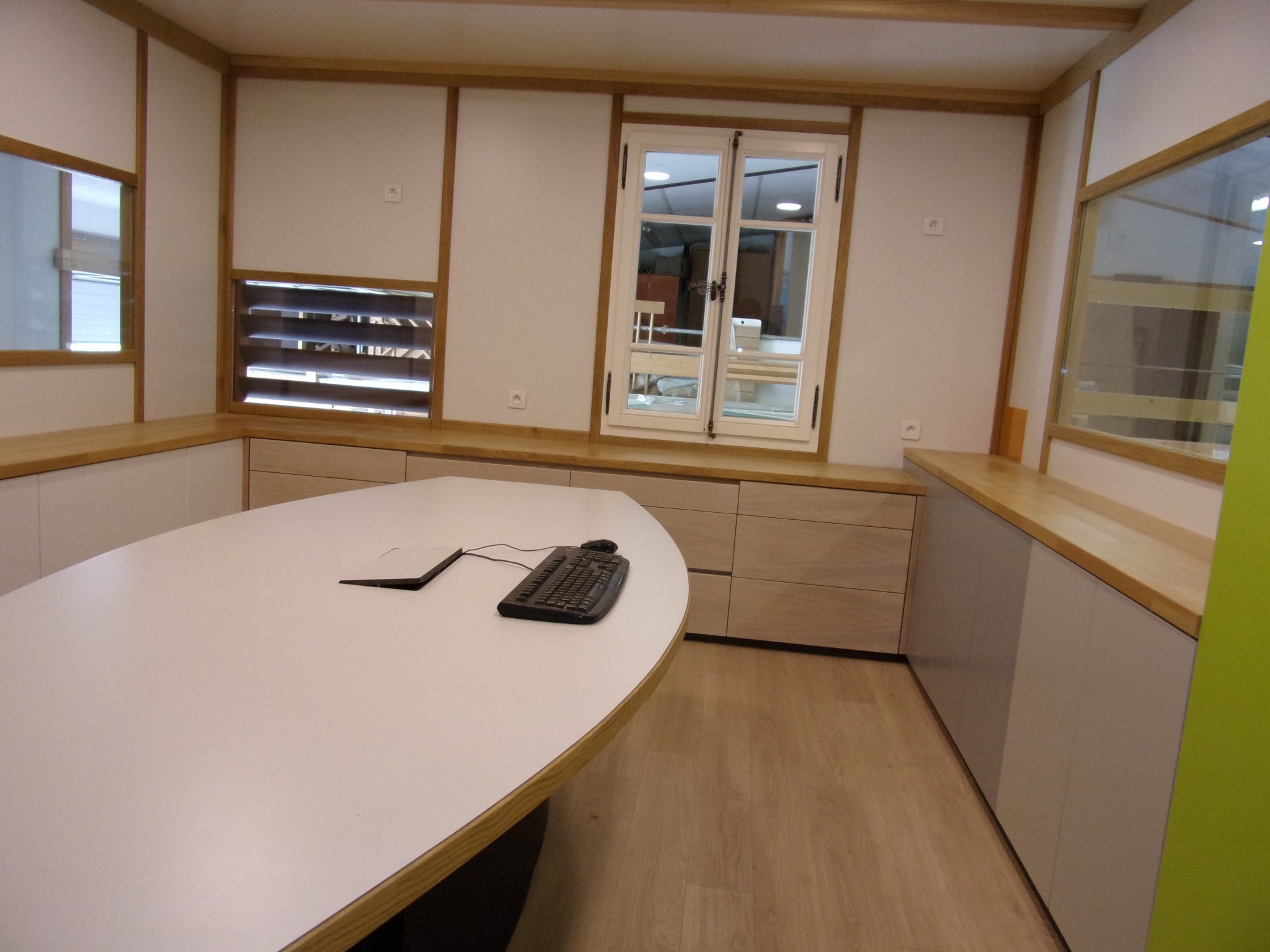 MENUISERIE MD a fabriqué et installé entièrement sa salle de réunion dans son atelier de Marseille.