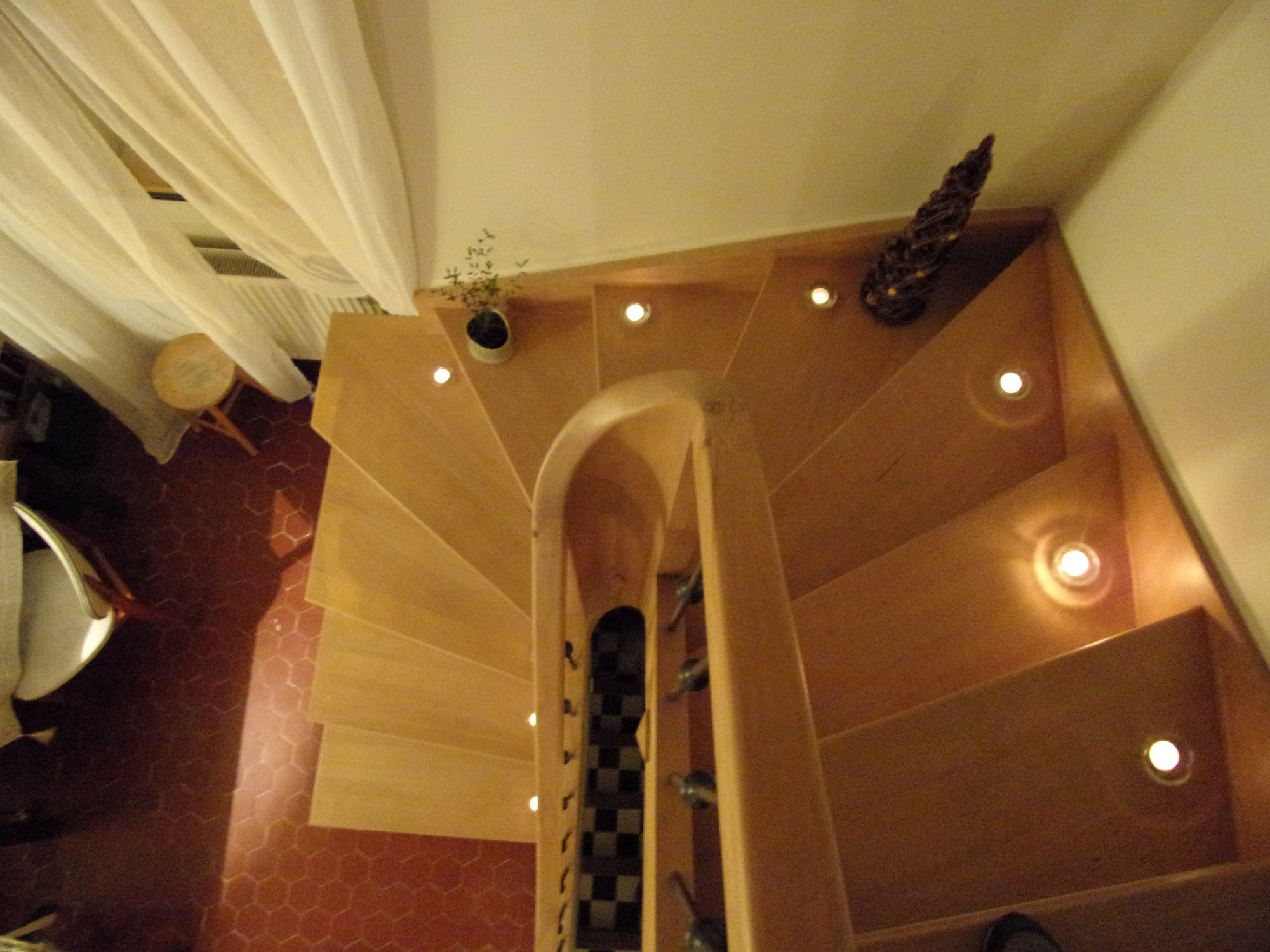 Toute l'originalité de l'escalier se situe dans son noyau, présenté sur la 3ème photo, ainsi que le plafond rampant réalisé par notre cliente.
