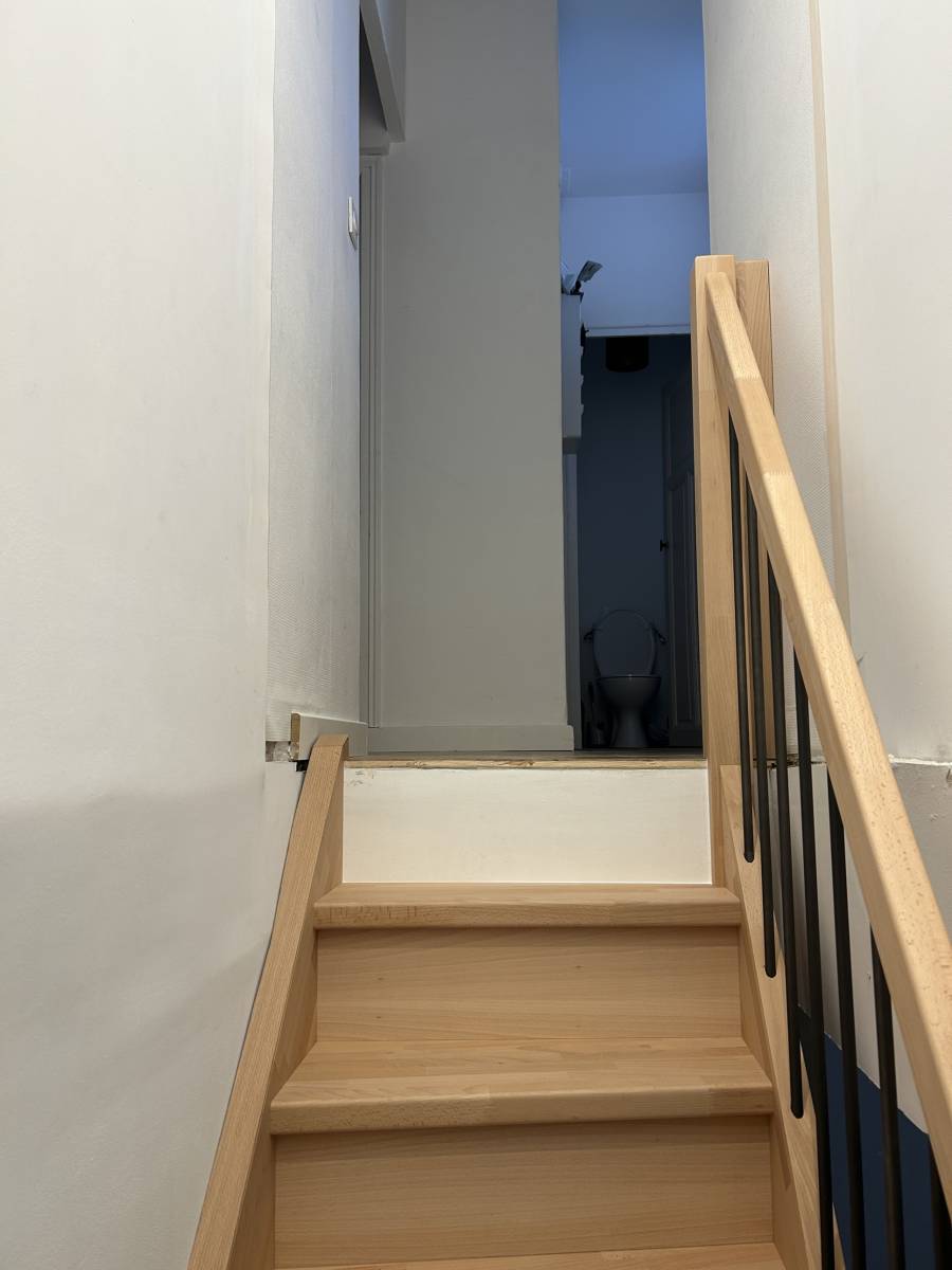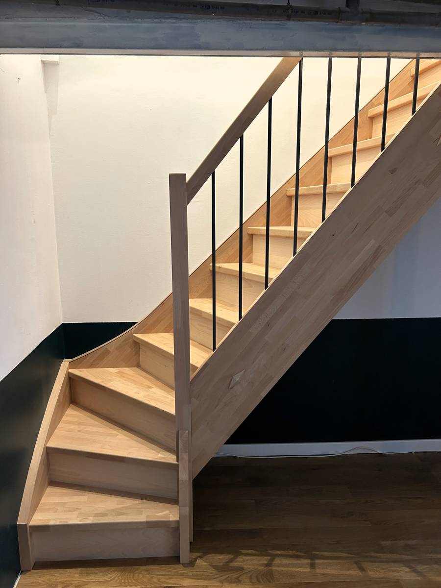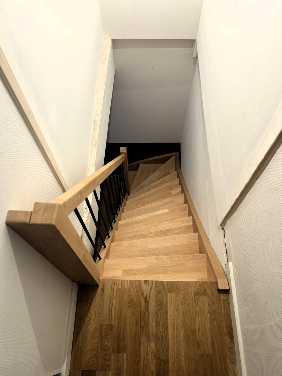 Pour ce projet, nous avons réalisé un escalier 1/4 tournant, entièrement fabriqué dans notre atelier, avec une attention particulière portée au confort d’utilisation.