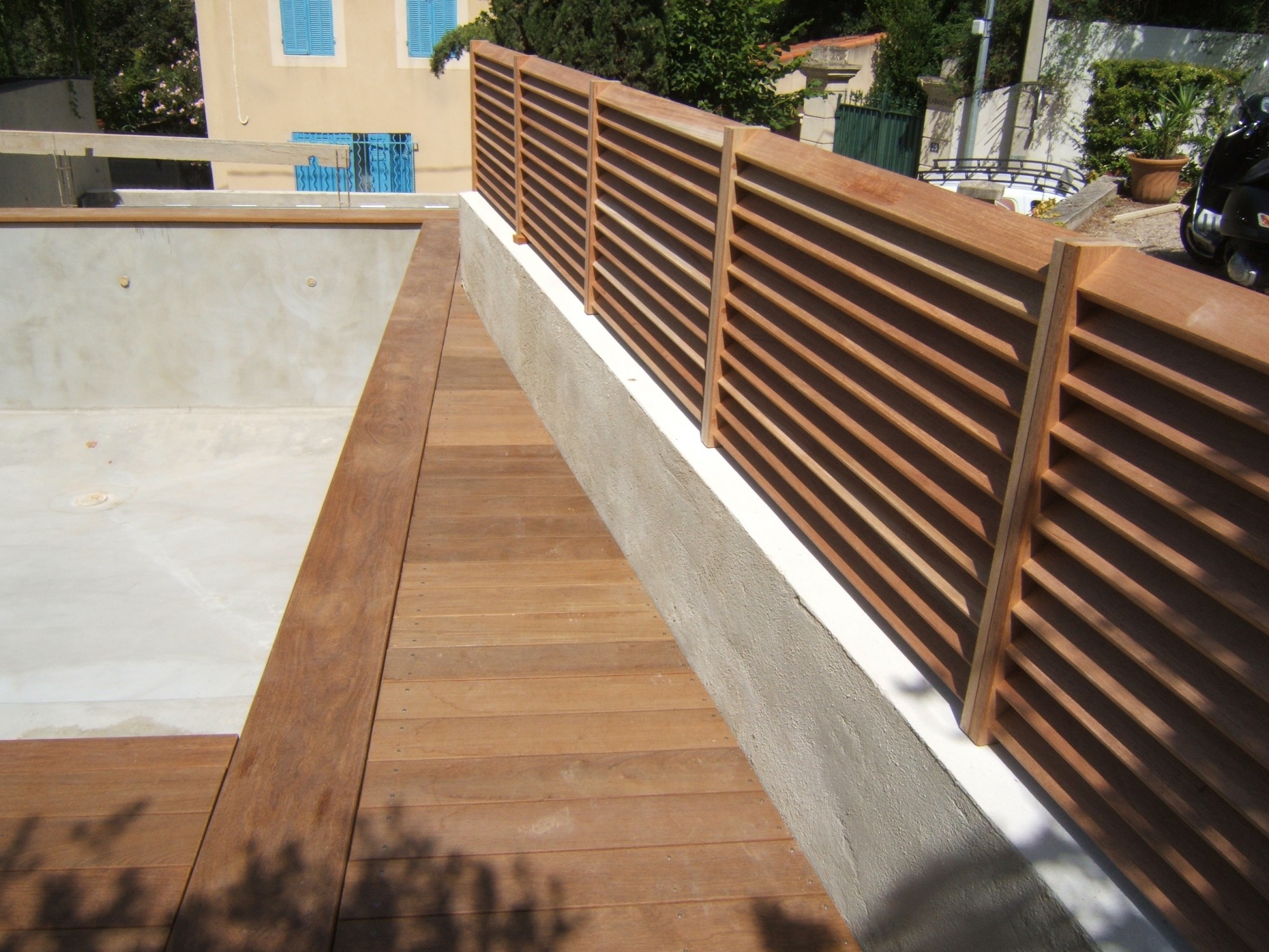 MENUISERIE MD a fabriqué pour son client, à Marseille 7ème, cette clôture bois faisant également office de pare vue.
