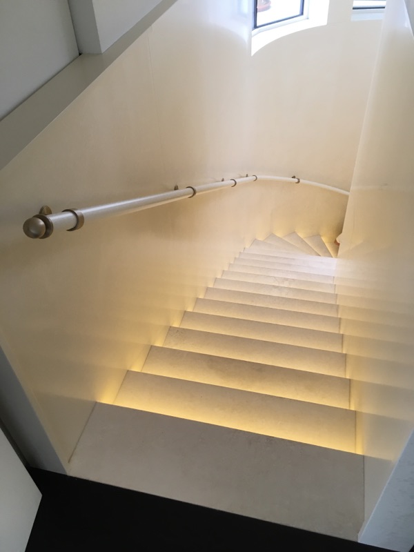 MENUISERIE MD a fabriqué cette rampe courbe, laquée blanche, dans son atelier de Marseille.